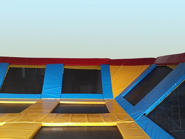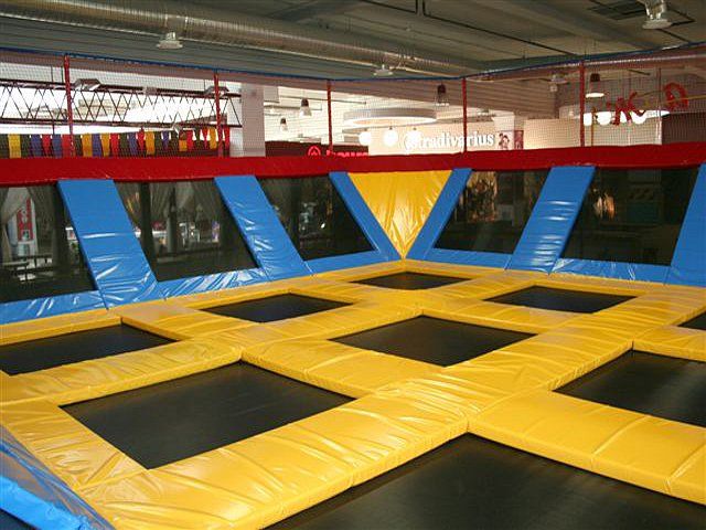 Это спортивный батут или даже "Батутная арена" с множеством прыжковых мест. Батутная арена может сочетаться с мягкой ямой, наполненной поролоновыми кубиками, что делает аттракцион еще привлекательней для посетителей. Традиционно высокое качество RIF в сочетании с полной безопасностью.