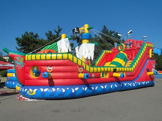 Новинка в семье батутных комплексов RIF®. Этот батут с двумя спусками и множеством элементов на палубе порадуют малышей необычным дизайном и большими размерами.