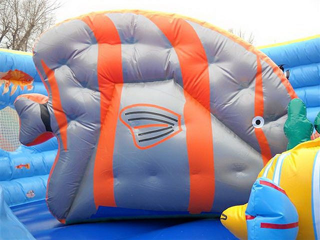 Новинка Батут Аквариум отличается от других батутов своей необычной формой и разнообразием в нем морских обитателей. Дети с удовольствием будут играть среди множества рыб, морcких коньков и даже могут прокатиться с небольшой горки в виде рыбки. Играя, дети могут познавать подводный мир. Надувные батуты, произведенные нашей компанией, прослужат Вам свыше 7 лет, при правильной эксплуатации. И все это благодаря уникальной технологии склеивания.