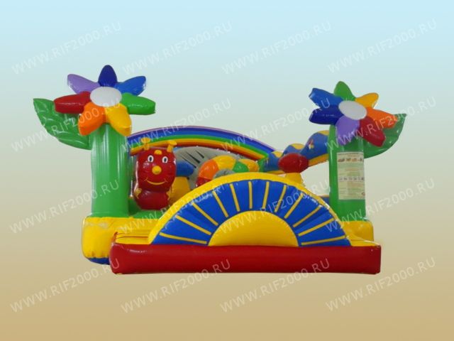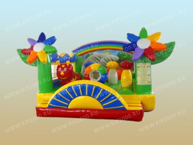 Вы можете купить батут "Полянка 2" –Ещё более яркие надувные фигуры грибов и ромашек обеспечат хорошее настроение Вашим посетителям, а надувная горка-ежик станет настоящей находкой в центре полянки. Все декоративные элементы выполнены аппликацией, поэтому долгий срок службы и неизменный внешний вид батута Вам гарантированы! Для детей всех возрастов. В стандартной поставке этого аттракциона вентилятор мощностью 1,1кВт/час.