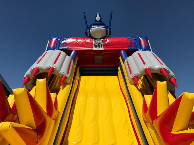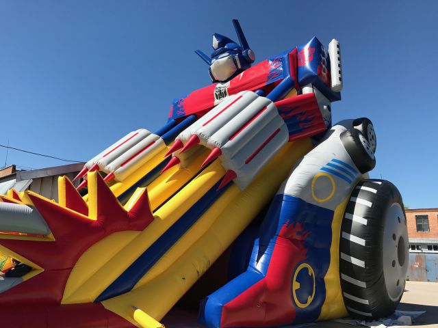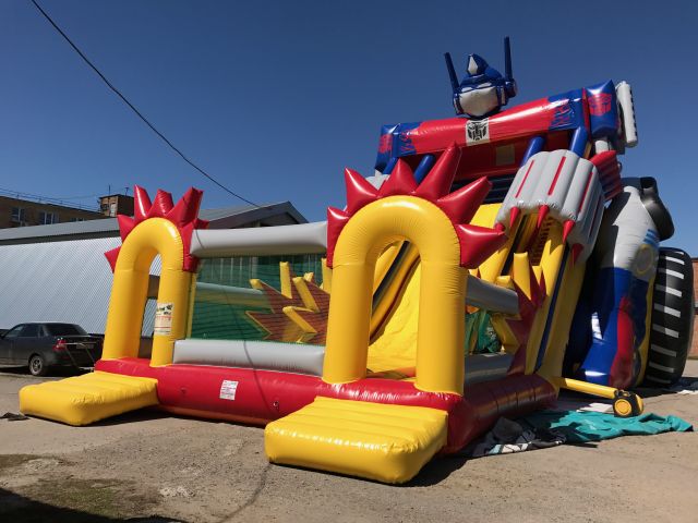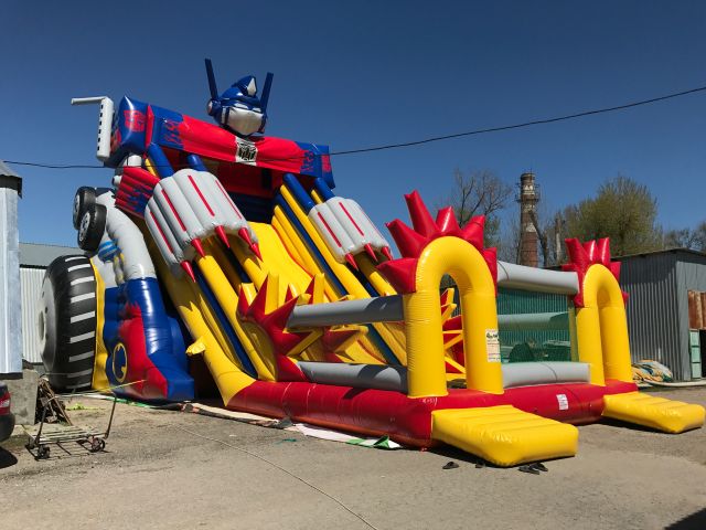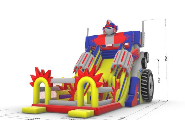 Если для Вас семь метров высоты многовато, мы предлагаем надувную горку-батут "Робот М 6". Высота стартовой площадки 6 метров! Общая особенность этих надувных горок – оригинальный внешний вид, трамплин на спуске и большие размеры. Традиционно высокое качество материалов и сборки! Из-за больших размеров этого аттракциона на нем обычно используется два вентилятора.
