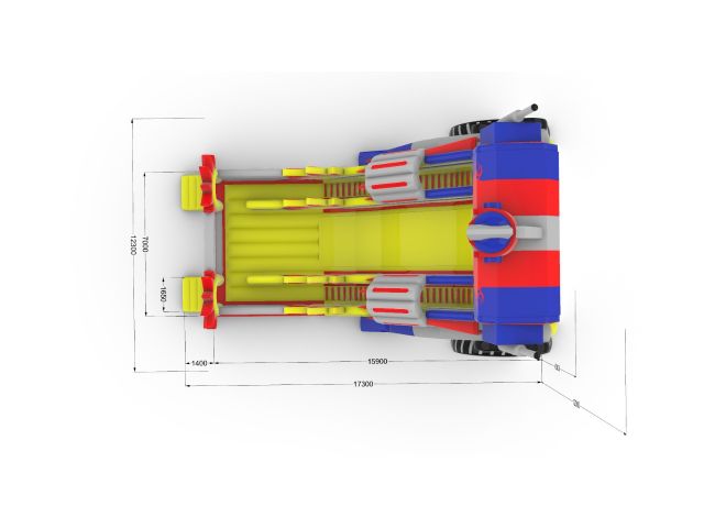 "Робот М 7" – Совершенно новый, оригинальный дизайн! Высота стартовой площадки – 7м! Огромные размеры этого надувного батута и привлекательный внешний вид легко притянут к себе всех, кто окажется поблизости. А тем, кто будет дальше, просто понадобится больше времени, чтобы к Вам подойти. Ведь общая высота этого батутного комплекса больше 10м, и он будет виден с любой точки парка или пляжа.