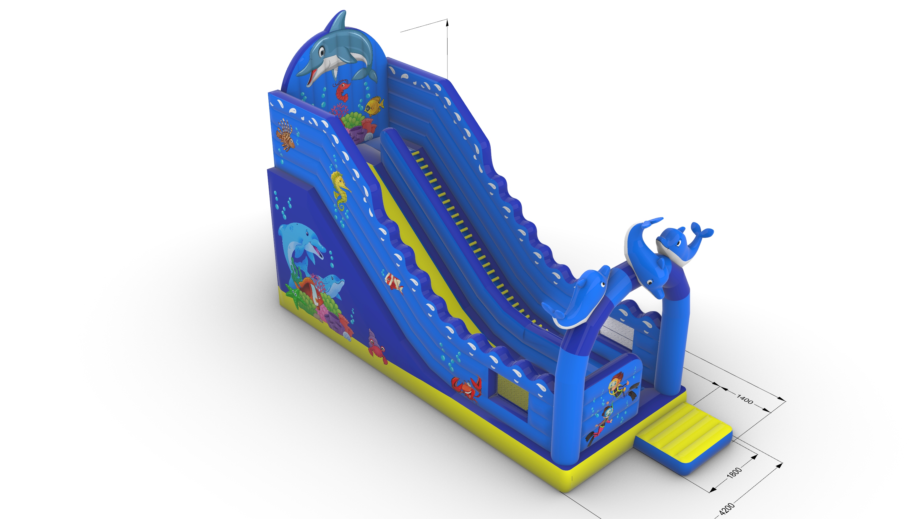 Батут-горка - один из самых популярных и любимых аттракционов. Мы постарались, чтобы наши надувные горки-батуты удивляли Вас и размерами и дизайном, и , конечно, качеством. А если у Вас есть идеи по оформлению - мы готовы к сотрудничеству! Горки батуты "М4 - Тропик" и "М4 - Дельфин" - похожие размеры, но разный дизайн. Выбирайте!