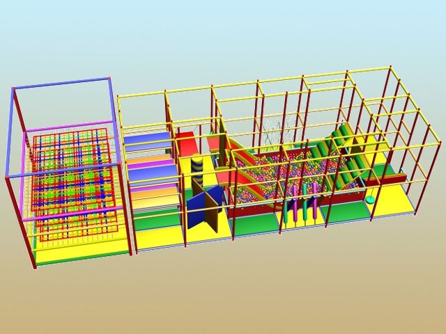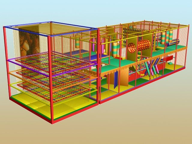 Жесткий каркас в мягкой оболочке, стены из высокопрочной капроновой сетки, мягкие игровые элементы - основные составляющие этих игровых комплексов.