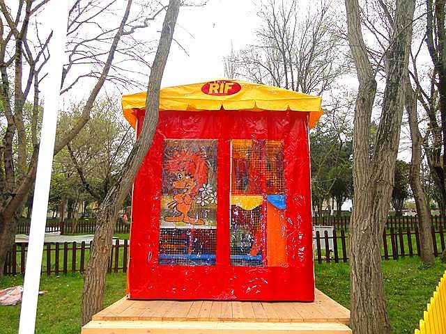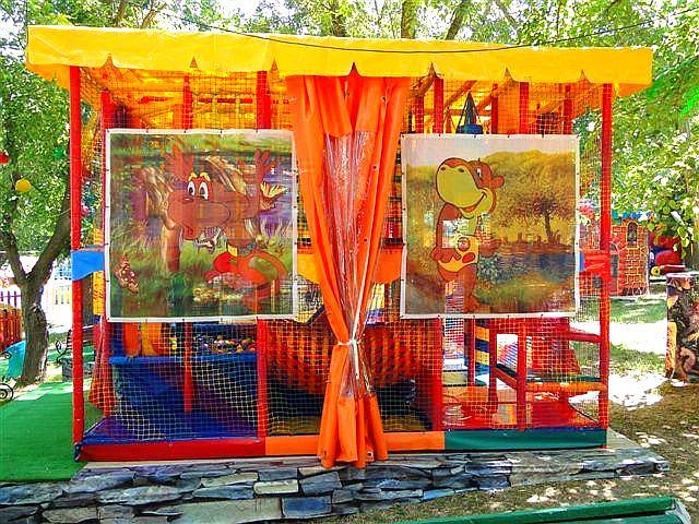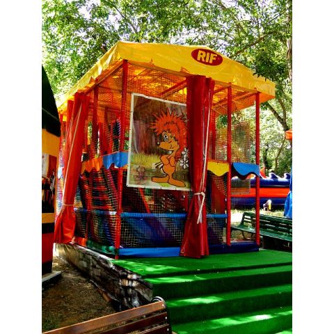 Крыша и боковые шторы - комплектация для установки комнаты вне помещений. Для приведения этого комплекса в рабочее состояние необходимо несколько минут подготовки. Тысячи разноцветных шариков в бассейне позволяют абсолютно безопасно "плавать" в них детям разного возраста.
