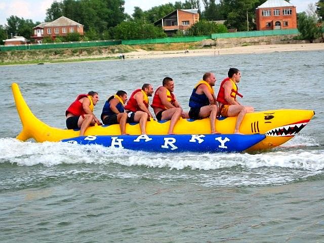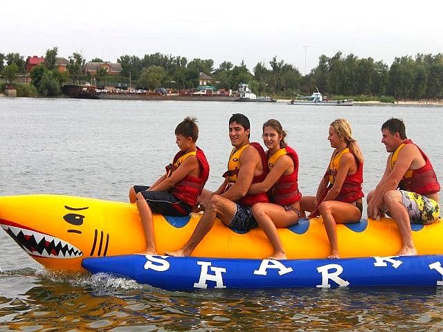 Буксируемый водный аттракцион “Акула” - это отличное решение для тех, кто хочет выделиться на пляже своим ярким и необычным дизайном, особенно если на пляже уже есть обычный “Банан”. Аттракцион имеет спереди изображение акульей пасти, а на конце акулий хвост. Стандартный цвет-желтый, но для еще большего эффекта аттракцион можно заказать и в сером цвете, либо в других цветах на выбор заказчика. Этот буксируемый водный аттракцион также может быть выполнен в виде “Дубль-Акула”-две Акулы рядом.