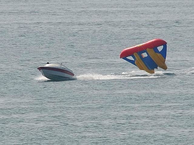 Отлично подходит для экстремального катания, т.к. на достаточно высокой скорости буксировщика при определенных условиях он может даже взлететь на несколько метров над поверхностью воды, поэтому нужно крепче держаться за специальные крепления.