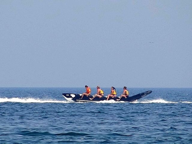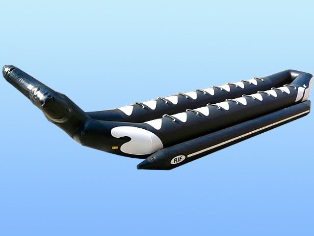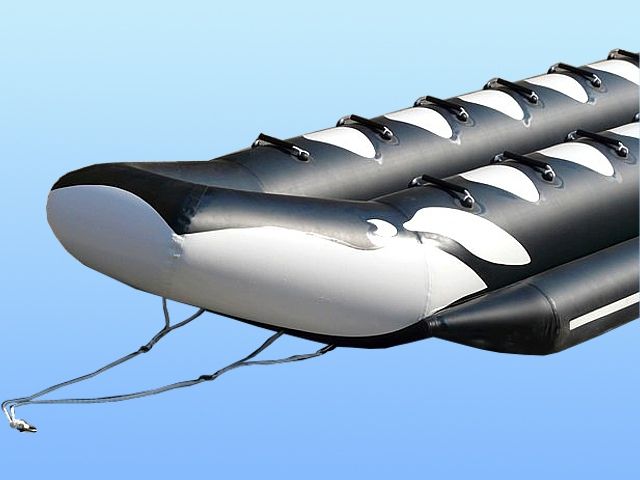 Компания Риф не перестает радовать людей новыми разновидностями водных аттракционов “”. “Банан” в виде Касатки “” обычно не оставляет равнодушными посетителей пляжа, ведь его оригинальный дизайн является очень ярким и заметным. Буксируемый водный аттракцион “Касатка”, как и “банан”, может быть выполнен в виде сдвоенного корпуса и будет называться уже “Касатка-твин”. Аттракцион “Касатка” изготавливается из 5-ти слойного материала ПВХ высокой плотности, что обеспечивает аттракциону высокую износоустойчивость.