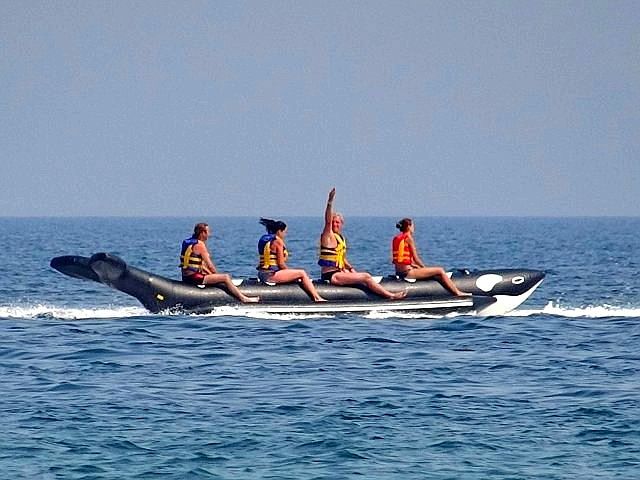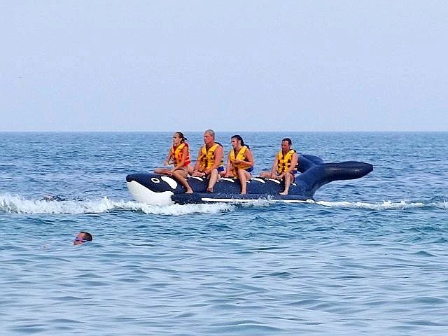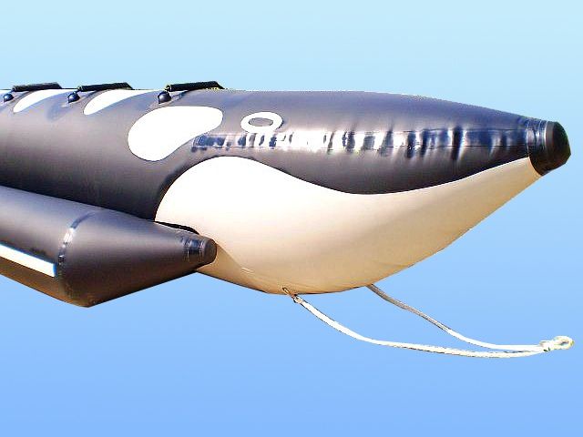 Буксируемый водный аттракцион “Касатка”-это отличное решение для тех, кто хочет выделиться на пляже своим ярким и необычным дизайном, особенно если на пляже уже есть обычный “Банан”. Аттракцион имеет спереди изображение кита касатки, а на конце китовый хвост. Правдоподобная расцветка для еще большего эффекта .Аттракцион можно заказать и в черно- желтом цвете, либо в других цветах на выбор заказчика. Этот буксируемый водный аттракцион также может быть выполнен в виде “Дубль-Касатка”-две Касатки рядом.