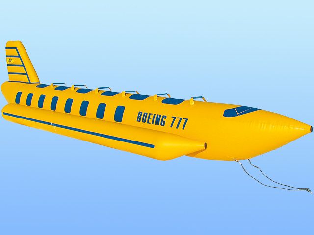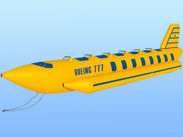 Компания Риф не перестает радовать людей новыми разновидностями водных аттракционов . “Банан” в виде самолета обычно не оставляет равнодушными посетителей пляжа, ведь его оригинальный дизайн является очень ярким и заметным. Буксируемый водный аттракцион “Боинг”, как и “банан”, может быть выполнен в виде сдвоенного корпуса и будет называться уже “Дубль- Боинг”. Аттракцион “Самолёт” изготавливается из 5-ти слойного материала ПВХ высокой плотности, что обеспечивает аттракциону высокую износоустойчивость.