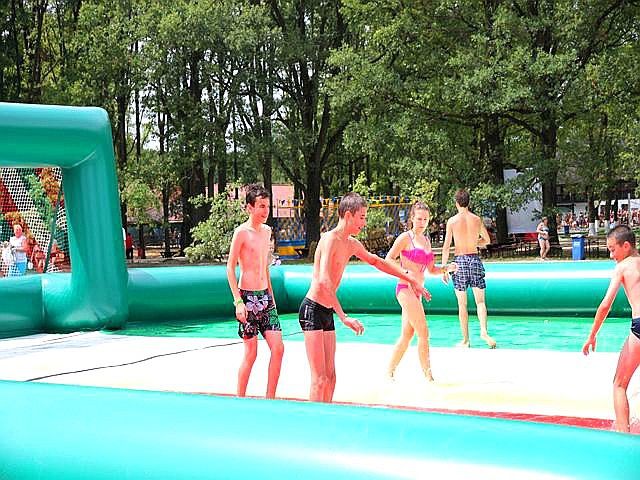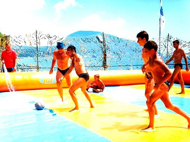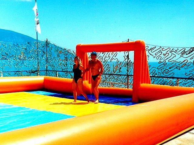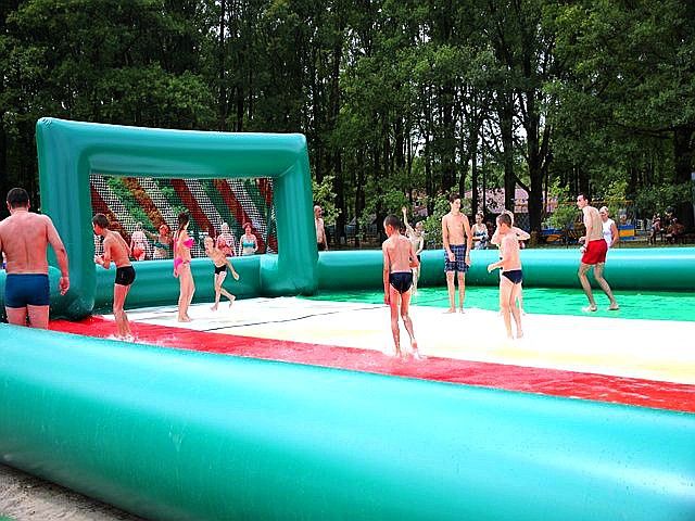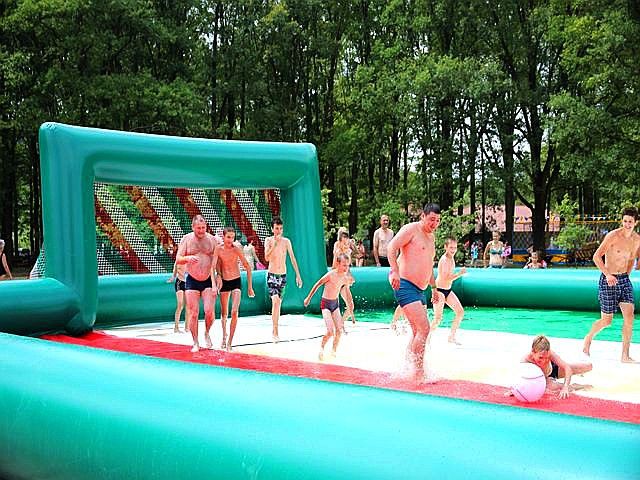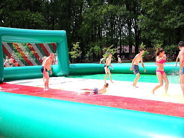 Вы когда-нибудь играли в футбол на воде? Если нет, то предлагаем Вам наш аттракцион “Скользкий футбол”! Заказав этот аттракцион, Вы дадите возможность испытать игрокам непривычные новые эмоции при игре в этот казалось бы знакомый всем вид спорта!