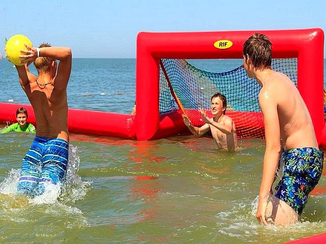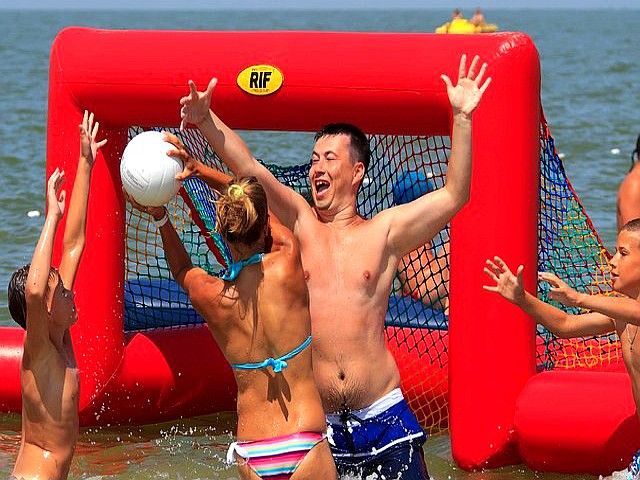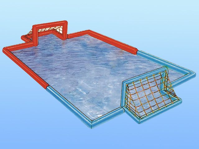 “Водное поло” - это надувное ограждение, по обеим сторонам которого находятся ворота. Простота его использования позволяет легко организовать захватывающие соревнования по ватерполо, т.к. использовать его можно в любом открытом водоеме.