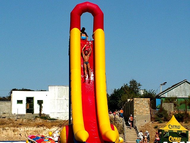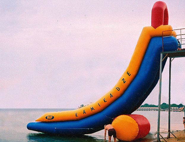 Не смотря на столь эктремальное название, у горок серии ”Камикадзе” очень мягкий надувной желоб и поддерживающие надувные цилиндры! Особенно этот аттракцион любят дети!