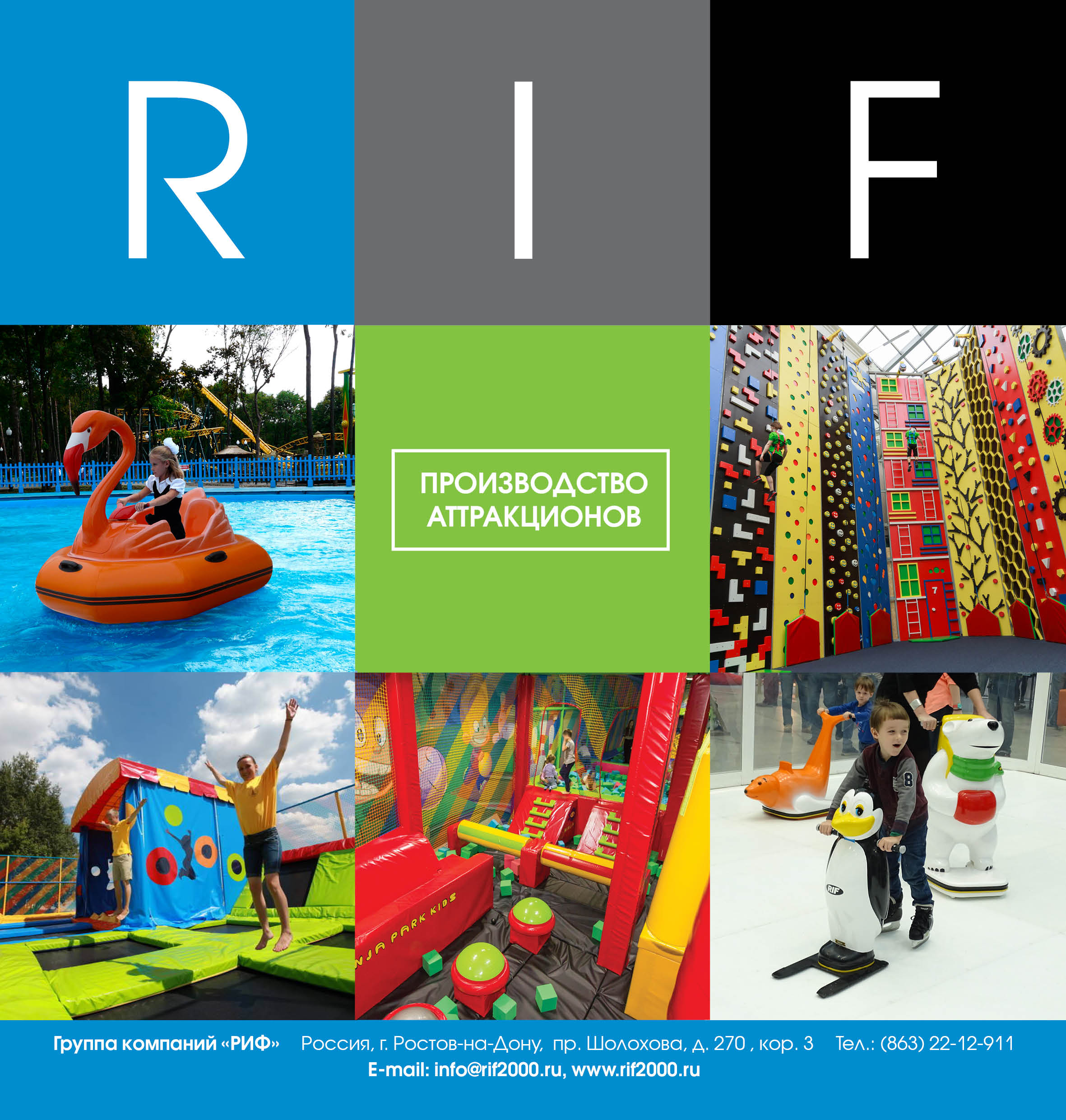 На выставке Компанией "РИФ" будут представлены все основные направления современной индустрии развлечений: аттракционы парковые, оборудование для детских и спортивных площадок, тиры, батуты надувные, веревочные парки, батутные арены, тематический дизайн, услуги по проектированию парков и развлекательных центров, и многое другое. Аттракционы от компании "РИФ" стали неотъемлемой частью семейного отдыха. Их разнообразие настолько велико, что подобрать лучший аттракцион для своего парка, развлекательного центра или детской площадки становится намного сложнее, чем раньше. Более того, встает вопрос о его безопасности, качественном обслуживании, и насколько он будет интересен целевой аудитории.